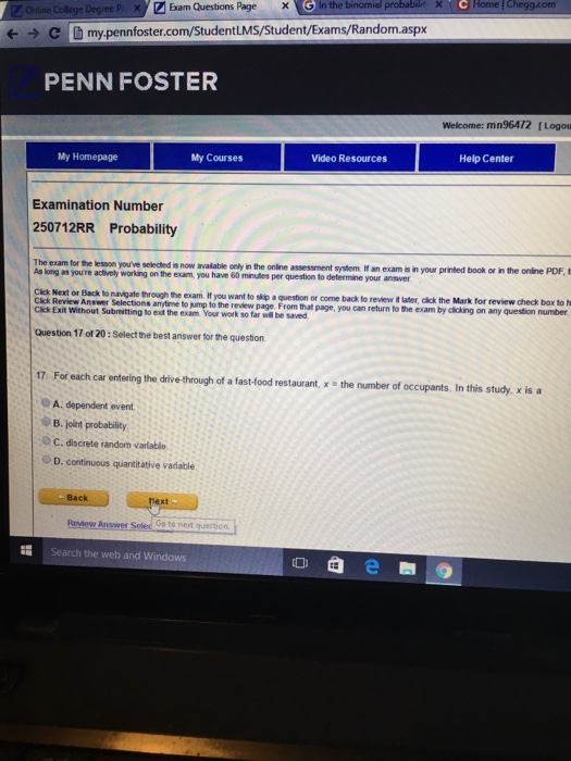 Solved C My Pennfoster Com Student Uden Penn Foster My Chegg Com